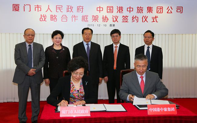 會(huì)談后,廈門(mén)市倪超副市長(zhǎng)和集團(tuán)許慕韓副總經(jīng)理代表雙方簽署了《廈門(mén)市人民政府中國(guó)港中旅集團(tuán)戰(zhàn)略合作框架協(xié)定》,廈門(mén)市人民政府裴金佳市長(zhǎng)、廖華生秘書(shū)長(zhǎng),集團(tuán)張學(xué)武董事長(zhǎng)、姜巖總經(jīng)理、傅卓洋副總經(jīng)理共同證簽。鄭江總經(jīng)理助理主持簽字儀式。