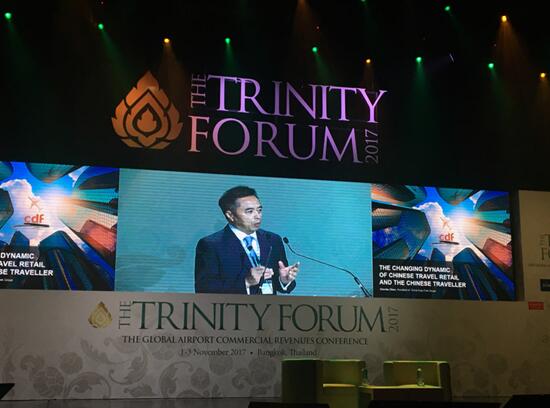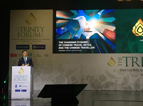 2017年11月2日,由穆迪報(bào)道、國(guó)際機(jī)場(chǎng)協(xié)會(huì)(ACI)和亞太國(guó)際機(jī)場(chǎng)協(xié)會(huì)(ACI Asia Pacific)聯(lián)合主辦,泰國(guó)王權(quán)國(guó)際集團(tuán)和泰國(guó)機(jī)場(chǎng)公司共同承辦的三方論壇在泰國(guó)曼谷拉開(kāi)帷幕。上午,穆迪公司總裁Martin Moodie、國(guó)際機(jī)場(chǎng)協(xié)會(huì)(ACI)總干事Angela Gittens以及泰國(guó)機(jī)場(chǎng)高級(jí)執(zhí)行副總裁Sasisubha Sukontasap分別致辭,共同開(kāi)啟盛會(huì)。來(lái)自世界各地的機(jī)場(chǎng)、零售商和品牌代表匯聚一堂,共同探討機(jī)場(chǎng)商業(yè)未來(lái)發(fā)展趨勢(shì)。中國(guó)免稅品(集團(tuán))有限責(zé)任公司(以下簡(jiǎn)稱(chēng)“中免集團(tuán)”)總經(jīng)理陳國(guó)強(qiáng)受邀參加論壇。