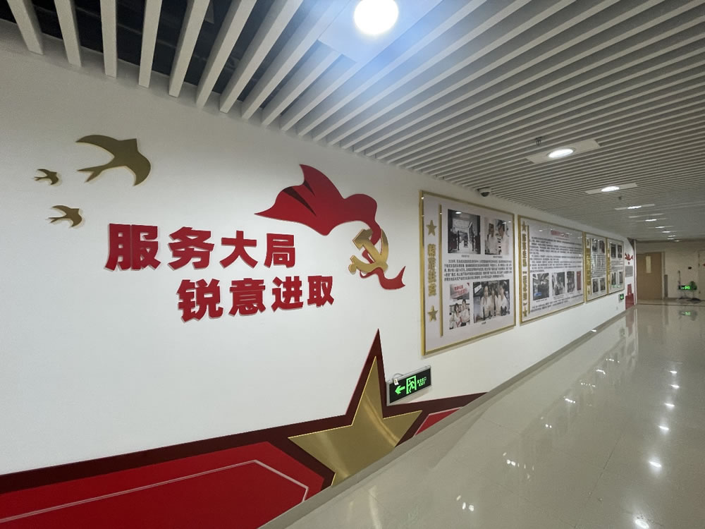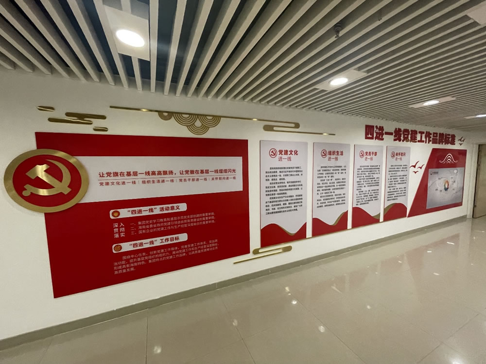 該長(zhǎng)廊全長(zhǎng)近125米,分為“初心使命”“奮輯前行”“黨建領(lǐng)航”“踐行承諾”四個(gè)篇章,涵蓋了習(xí)總書記重要講話精神摘錄、企業(yè)發(fā)展歷程、歷史成績(jī)、黨組織概況及組織架構(gòu)、“我為群眾辦實(shí)事”實(shí)踐活動(dòng)開展情況、精準(zhǔn)扶貧、黨風(fēng)廉政建設(shè)、防范走私套代購(gòu)專項(xiàng)工作、黨建品牌創(chuàng)建要點(diǎn)、支部特色工作法、“兩優(yōu)一先”榮譽(yù)展示、黨建活動(dòng)剪影、黨務(wù)公開欄、集團(tuán)黨建示范經(jīng)驗(yàn)推廣展示等十多個(gè)大類的內(nèi)容,采用了傳統(tǒng)圖文并茂與視聽互動(dòng)相結(jié)合的形式,專門設(shè)置了3處電子顯示屏,循環(huán)播放各類影像素材,全景展現(xiàn)了三亞店多年來堅(jiān)持“聽黨話、跟黨走”不動(dòng)搖的責(zé)任擔(dān)當(dāng)和廣大黨員干部員工不怕困難、勇于創(chuàng)新的奮斗精神。