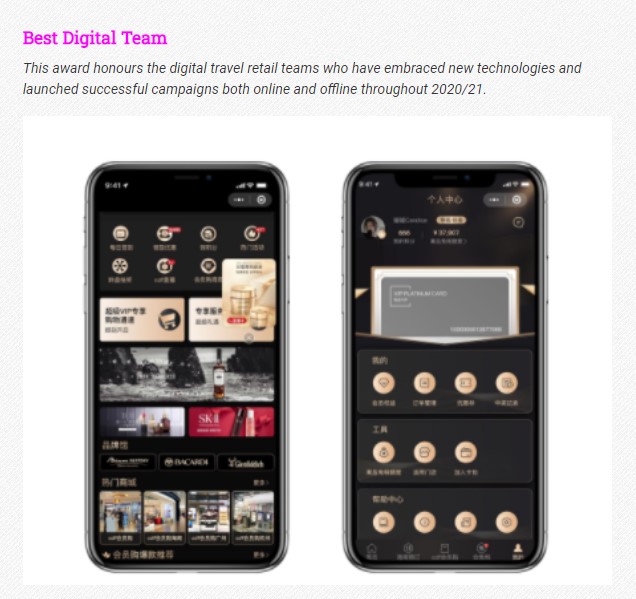 “最佳數(shù)字團(tuán)隊(duì)”獎(jiǎng)旨在表彰過(guò)去一年內(nèi)全球旅游零售行業(yè)大力倡導(dǎo)數(shù)字創(chuàng)新和先進(jìn)技術(shù),并成功開(kāi)展線(xiàn)上+線(xiàn)下活動(dòng)數(shù)字營(yíng)銷(xiāo)的旅游零售團(tuán)隊(duì)。為更好滿(mǎn)足消費(fèi)者需求,中免集團(tuán)結(jié)合微信營(yíng)銷(xiāo)生態(tài)系統(tǒng),于2020年11月正式上線(xiàn)“中免會(huì)員”微信小程序,經(jīng)過(guò)多次迭代和發(fā)展,聚合了工具屬性、內(nèi)容屬性、營(yíng)銷(xiāo)屬性和電商屬性,為會(huì)員和品牌提供周到細(xì)致的全方位服務(wù)。