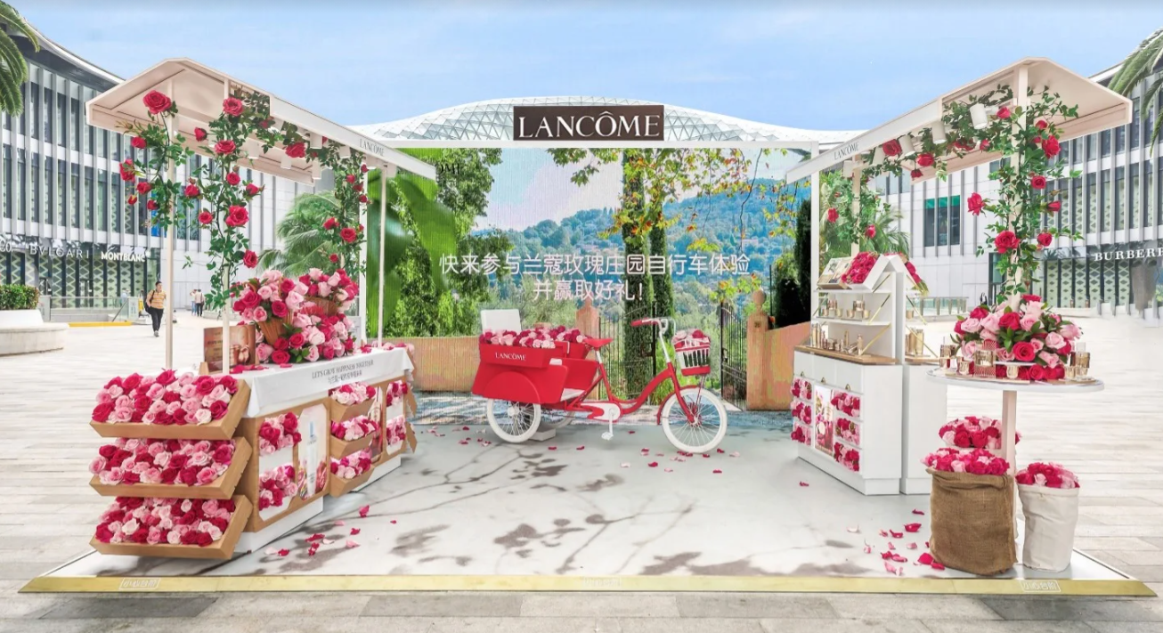 在三亞國(guó)際免稅城“一起收獲幸福未來(lái)”快閃活動(dòng)中,游客可通過(guò)掃描“可持續(xù)餐桌”上的二維碼創(chuàng)建自己的虛擬玫瑰花束。蘭蔻亞太旅游零售部承諾,消費(fèi)者每完成一次互動(dòng)虛擬花束,公司都會(huì)在法國(guó)格拉斯玫瑰莊園中種植一株專(zhuān)屬的有機(jī)玫瑰。消費(fèi)者還可以參與蘭蔻玫瑰莊園自行車(chē)虛擬體驗(yàn)活動(dòng),欣賞玫瑰莊園的美景,并了解可再生能源生產(chǎn)的相關(guān)知識(shí)。