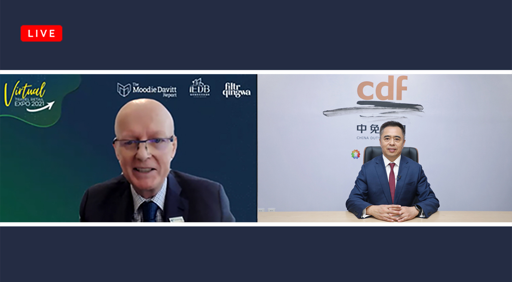 在演講結(jié)束后,中免集團(tuán)總經(jīng)理陳國強(qiáng)與穆迪國際有限公司創(chuàng)始人兼主席Martin Moodie圍繞疫情與海南旅游零售市場的發(fā)展趨勢等問題,進(jìn)行了深入交流。